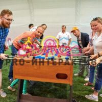 Реализация: 4-5 столов для настольного футбола и ряд футбольных аттракционов для ожидающих своей очереди? Поляну можно также разнообразить другими спортивными настольными играми: хоккей, аэрохоккей, баскетбол и даже кёрлинг.