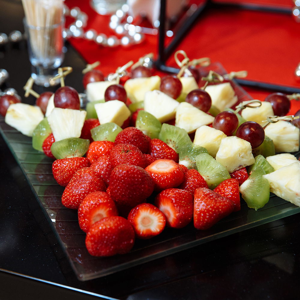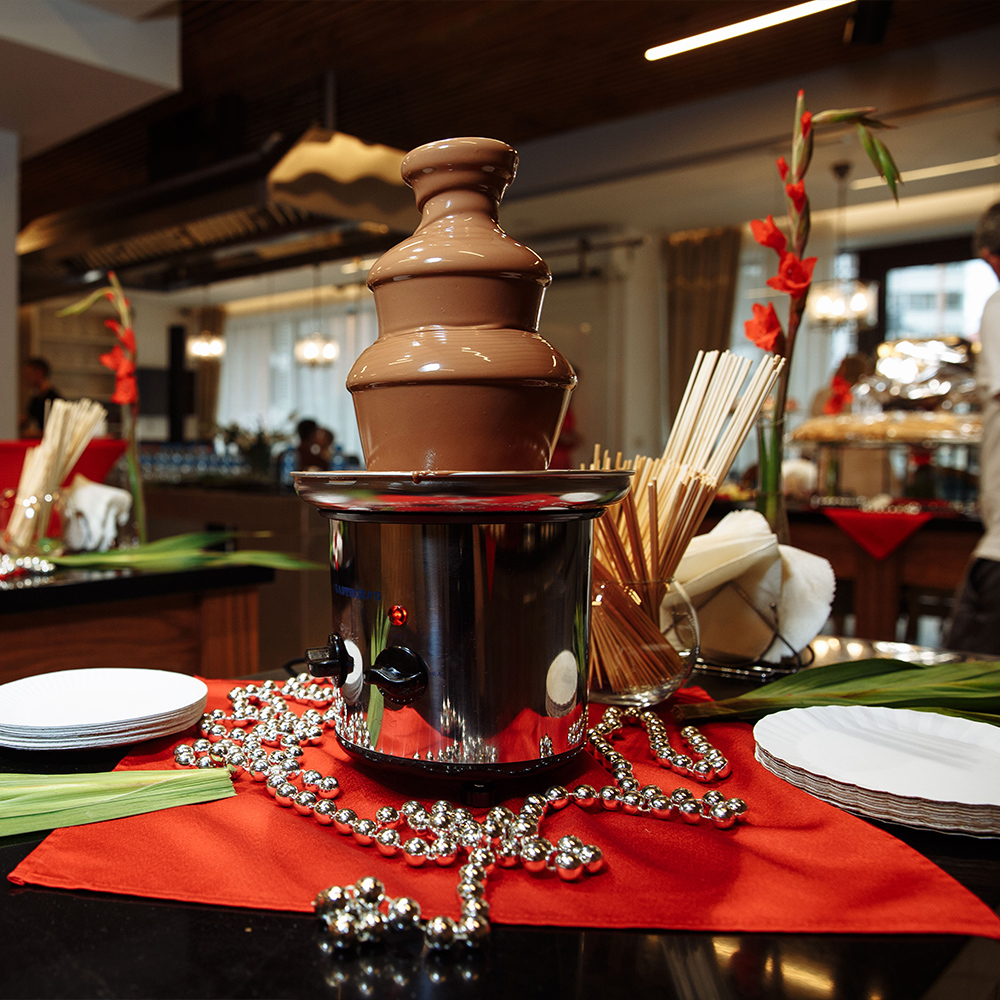 Шоколадный фонтан, свежие фрукты, лёгкие закуски и чайная станция, с изящным оформлением, позволили провести фуршет на женский праздник 8 марта.