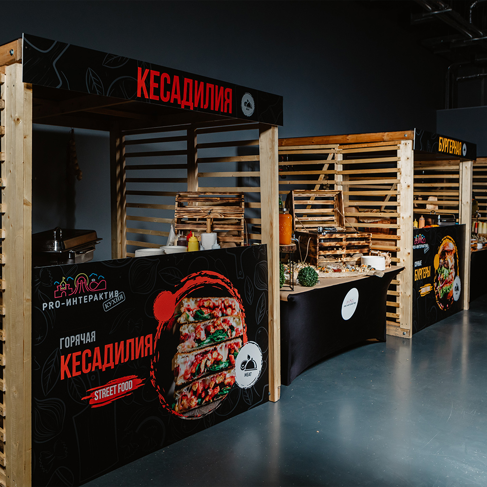 Организовали кейтеринг с приготовлением стрит-фуда и выдачи его из киосков на выставке в Москве.