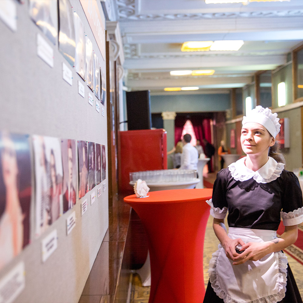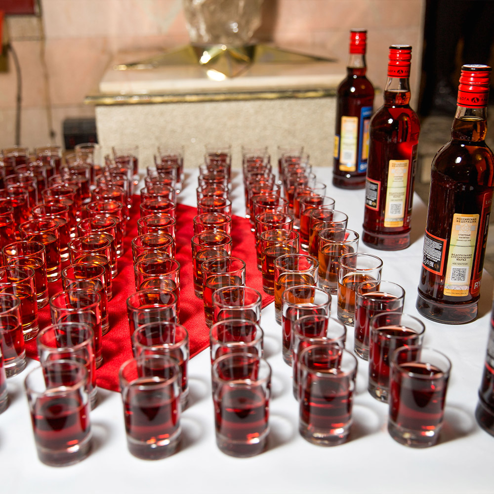 Оформили помещение, закуски и сами блюда в стиле первоклассного советского буфета. Предоставили аппараты с газ. водой и мороженным, стойки с сиропами.Предоставили официанток в форме буфетчиц, а сами блюда были выполнены в классике СССР.