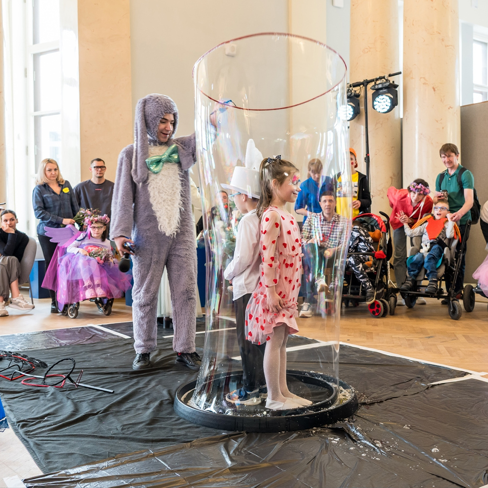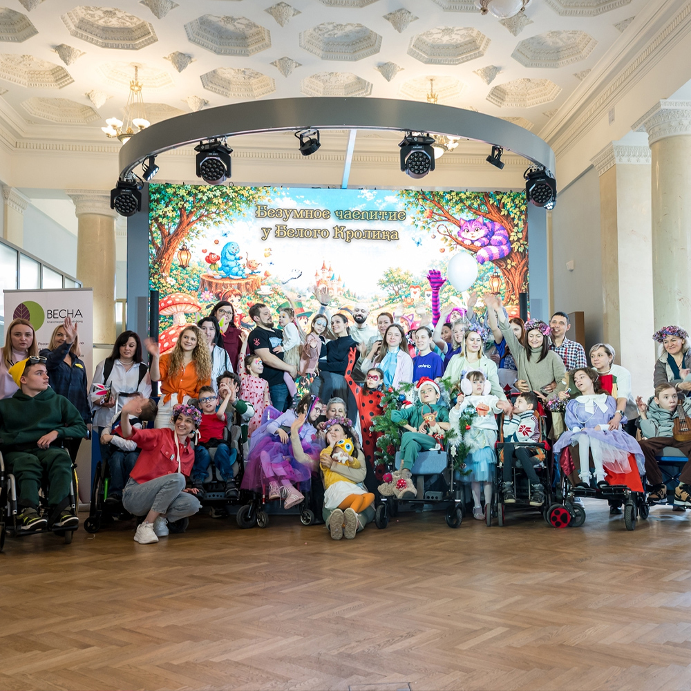 19 апреля в павильоне «Кролиководство» на ВДНХ прошёл инклюзивный костюмированный праздник «Безумное чаепитие у Белого Кролика», организованный фондом «Весна». Около тридцати детей вместе с родителями оказались в настоящей Стране чудес — с Алисой, Чеширским Котом, Белым Кроликом, шоу мыльных пузырей, аквагримом, мастер-классами по плетению венков из живых цветов и угощениями.