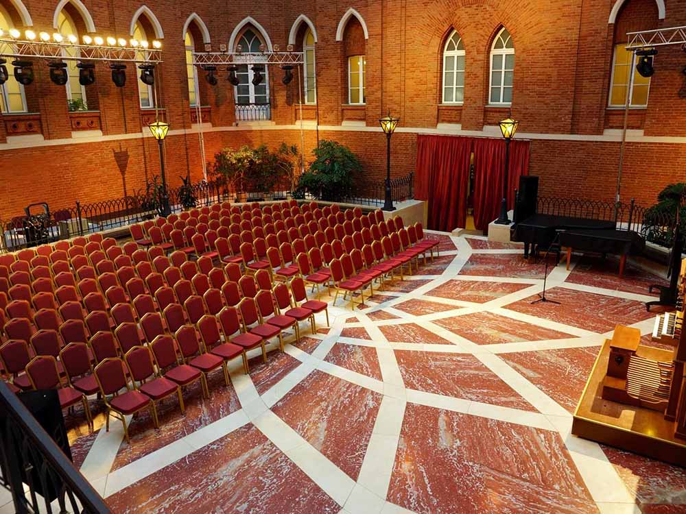 Одним из ключевых элементов интерьера атриума является немецкий орган, специально изготовленный для культурного центра «Царицыно». Этот музыкальный инструмент, обладающий высокой технической и акустической характеристиками, является важным элементом концертной жизни атриума. Регулярно здесь проводятся органные концерты, которые привлекают ценителей классической музыки и способствуют популяризации данного жанра. Кроме того, атриум служит выставочной площадкой, где организуются вернисажи художественных экспозиций.