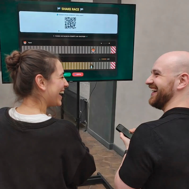 Главная задача участников — максимально быстро нажимать на кнопку на экране телефона. Чем выше скорость нажатий, тем быстрее движется персонаж игрока на общем экране. Простая механика, соревновательный дух и мгновенный отклик делают «Тапалку» отличным способом вовлечь гостей, создать азарт и оживить любую корпоративную программу.