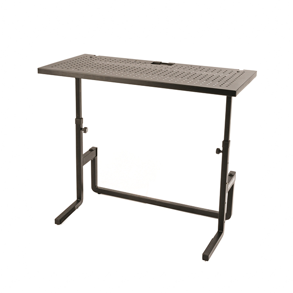 Универсальный мобильный стол для диджеев, отличающийся прочностью и удобством в перевозке. Выполнен из черной анодированной стали, оснащен регулируемыми по высоте ножками (64-97 см) и легким складным механизмом. Благодаря перфорированной столешнице обеспечивается эффективная вентиляция оборудования. Максимальная нагрузка — до 90 кг, масса самого стола — всего 1,25 кг. Идеален для установки микшеров, проигрывателей и контроллеров, дополнительно расширяется аксессуарами для ноутбуков и планшетов.