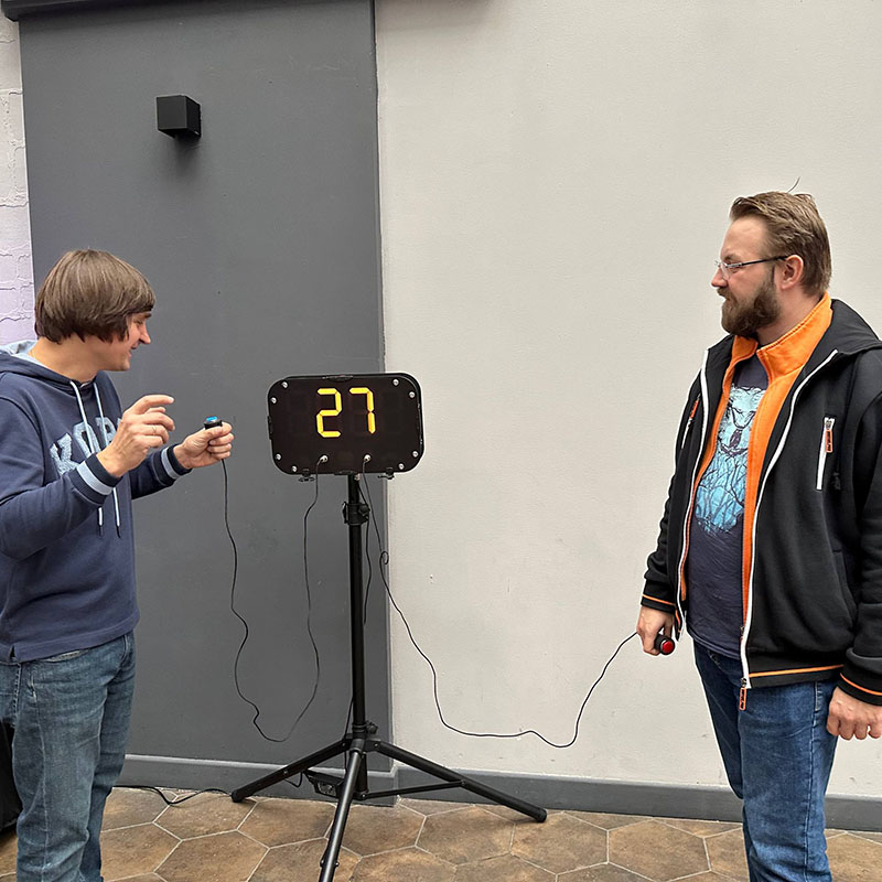 «Поймай секунду» — это интерактивная игра‑аттракцион, проверяющая скорость реакции, точность и внимательность игроков. Игра захватывает своей динамикой и азартом: скоростный формат и необходимость мгновенной реакции создают настоящее напряжение. При этом правила предельно просты и понятны с первого раза, а соревновательный элемент между двумя игроками добавляет интереса.