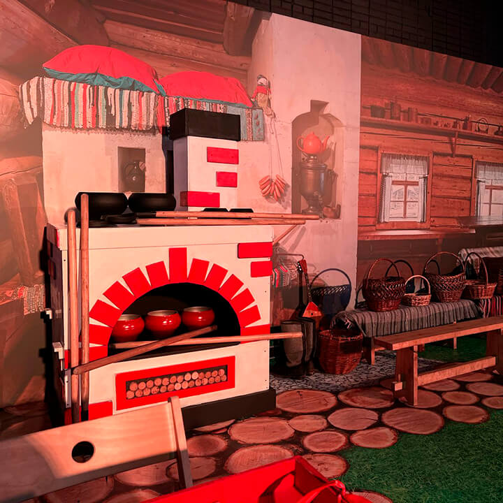С аттракционом «Емелина печь» у вас появится возможность организовать конкурс красных девиц, проверив их кухонную сноровку. В забавной эстафете смогут поучаствовать и добры молодцы, если, конечно, пройдут тест на управление ухватом. Задачи в этом забавном развлечении можно варьировать: от доставания чугунков и прочей утвари из печи на время до весёлой эстафеты с поэтапной доставкой всего необходимого от стола к печи.