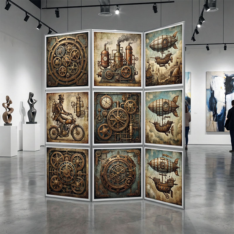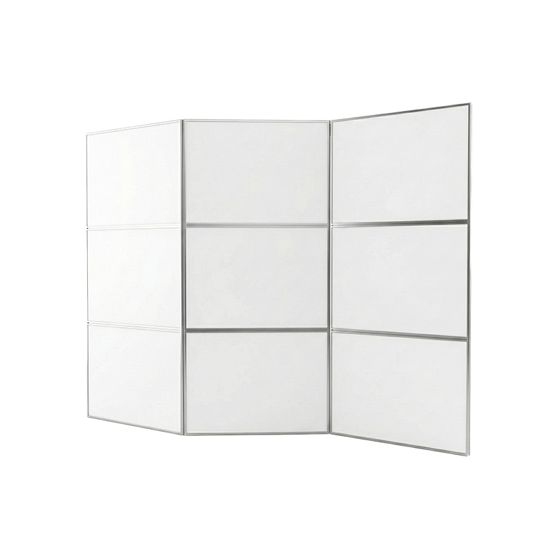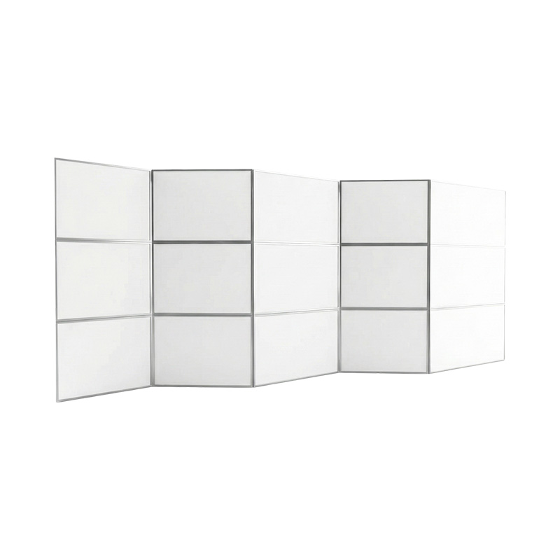 Планшетный (ширмовый) стенд с оригинальной горизонтальной конфигурацией, отличающийся увеличенной шириной каждой секции и общей высотой, составляющей три секции.