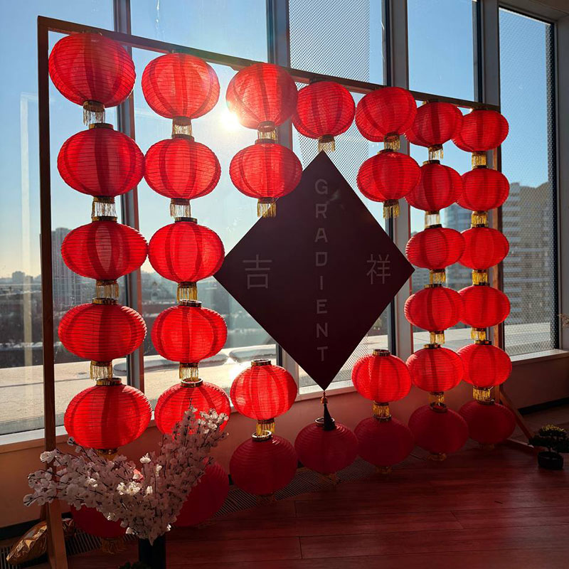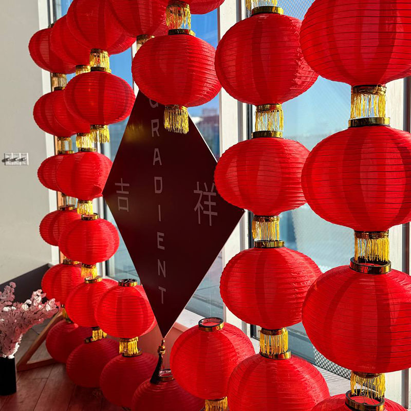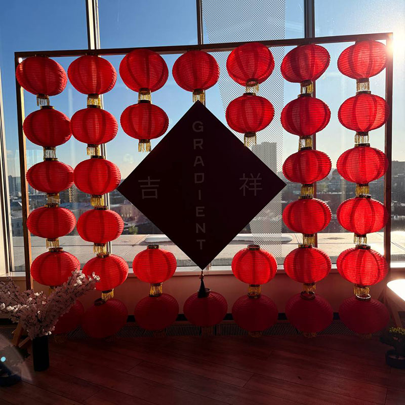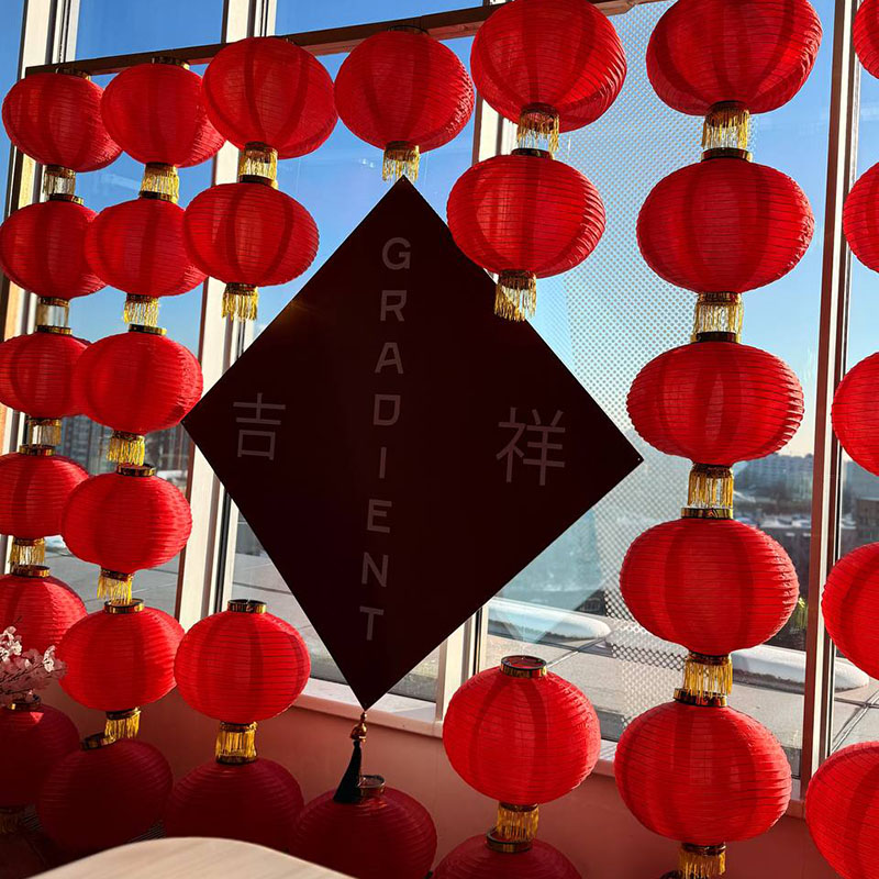 Добро пожаловать в атмосферу восточного праздника: яркая композиция из множества красных фонарей, аккуратно выстроенных в геометрическом порядке, создает эффектный фон для памятных снимков. В центре композиции — стильная таблица, которую вы можете кастомизировать по своему усмотрению: оклейка логотипами или оформление с помощью кастомной неоновой вывески.