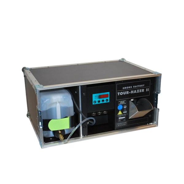 Smoke Factory — профессиональный хейзер мощностью 1600 Вт, формирующий легкий дым для сцены и клубов. Объем бака — 5 л, регулировка плотности тумана — 0-100%, управление через два кабеля DMX. Прогревается за 60 сек, оснащен электронным контролем температуры и вентилятором до 6000 об/мин. Весит 15,2 кг, габариты — 51×50×25 см. Создает выразительные визуальные эффекты в сочетании с осветительными приборами.