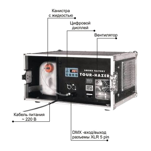 Характеристики генератора дымки:- Производительность: мощностной показатель 1600 Вт позволяет быстро наполнять помещение качественным туманом.