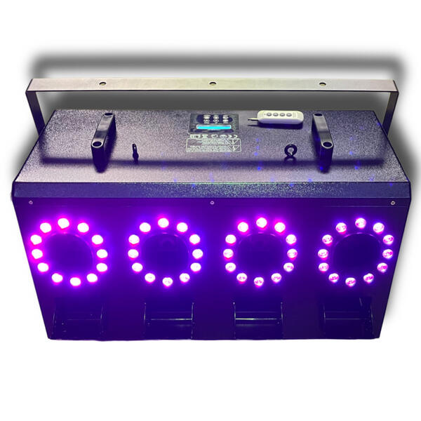 Этот четырехсопельный генератор спецэффектов производит большие (5-8 см) и плотные мыльные пузыри, заполненные дымом. Встроенная 3-в-1 светодиодная RGB-подсветка у каждого сопла придает пузырьковой массе яркие и насыщенные цвета, оживляя любое пространство. Дальность выброса пузырей в помещении составляет 6-7 метров, а на открытых площадках значительно возрастает. Гибкая система регулировки позволяет менять угол и высоту полета потока, что делает аппарат идеальным для дискотек, баров, шоу-программ и концертных площадок.