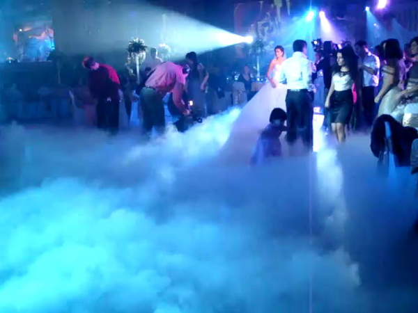 Поверхность окутывает плотное облако холодного пара, создавая визуальный образ парящих кучевых облаков или пушистого, только что выпавшего снега. Этот эффект напоминает мягкий, невесомый ковер, служащий эффектной, постоянно меняющейся декорацией. Низкотемпературный, стелющийся дым незаменим для создания возвышенного и романтичного настроения, особенно для первого танца молодоженов, словно парящих в небесной выси. Предлагаемый дым полностью безопасен и наполнит любое торжество незабываемой, приподнятой атмосферой.