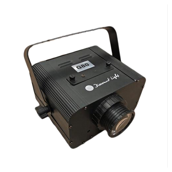 Гобо-проектор G80 мощностью 80 Вт с функцией звуковой анимации создает динамичные проекции логотипов и изображений, реагируя на звук движением гобо влево-вправо. Два сменных объектива обеспечивают углы раскрытия 30° и 60°. Устройство оснащено пультом ДУ, имеет компактные размеры (10×15×25 см) и стальной корпус. Возможно подвешивание к ферме или установка на штатив. Идеален для привлечения внимания и брендинга.