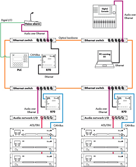Представляя собой центральный хаб, интерфейсный блок d&b audiotechnik R70 обеспечивает полное управление и мониторинг всех акустических систем D&B audiotechnik. Данное устройство позволяет осуществлять удаленный контроль из любой точки сети, будь то с ПК или мобильного устройства, тем самым полностью раскрывая потенциал подключенного оборудования. R70 значительно ускоряет процесс конфигурирования, упрощает ежедневную эксплуатацию и предоставляет детальные данные для диагностики. Его универсальность делает его пригодным как для временных, так и для постоянных инсталляций, давая звукоинженеру возможность заблаговременно формировать оптимальное звуковое пространство помещения.