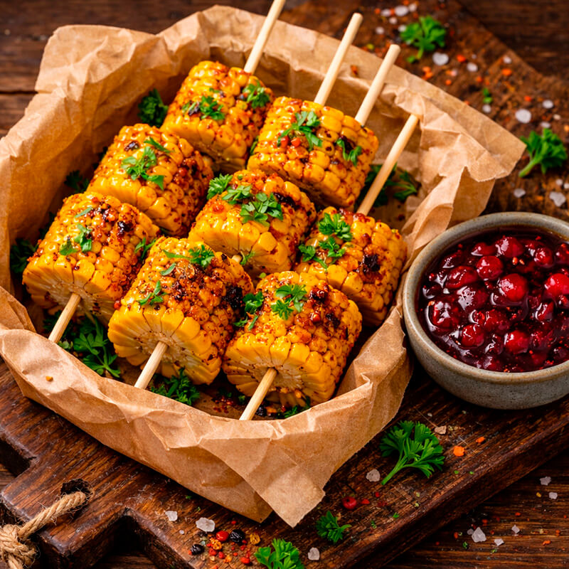 Хотите добавить ароматных ноток к вашему барбекю? Приглашаем попробовать нашу кукурузу гриль - сочную, нежную и невероятно аппетитную! Початки кукурузы, идеально обжаренные на гриле нашим опытным поваром, три варианта подачи на выбор: с солью, с сыром или с зеленью. Можете заказать с доставкой и все необходимое посуда, приборы и салфетки.