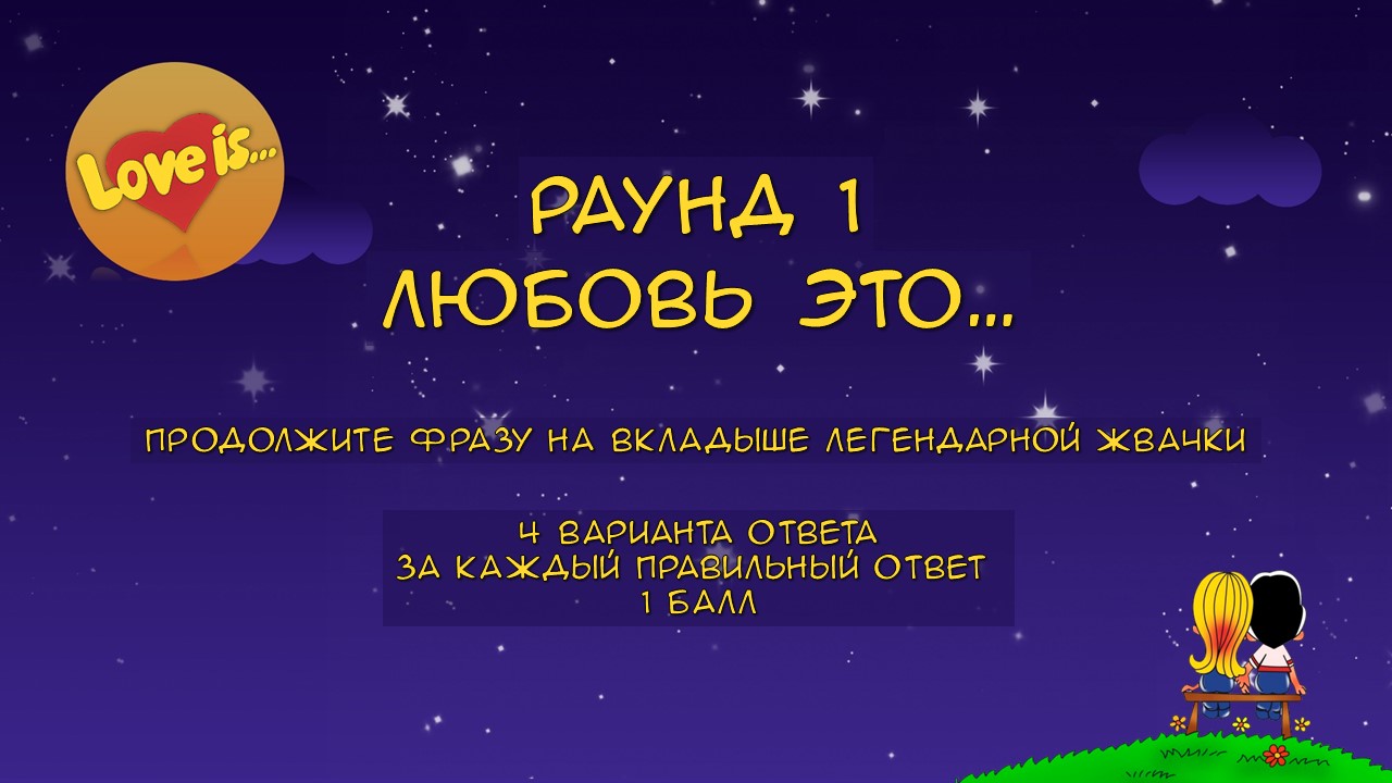 В этом раунде вопросы будут про любовь и отношения. За каждый правильный ответ 3 балла.