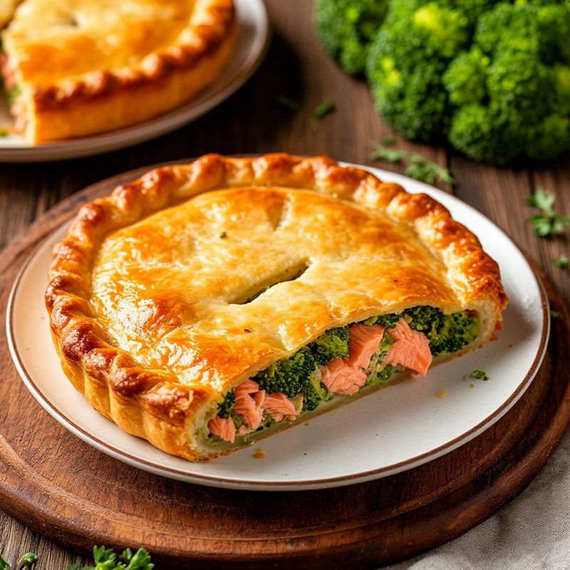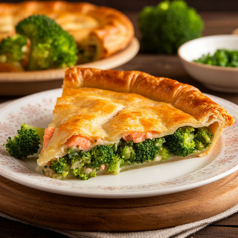 Изысканный пирог с гармоничным сочетанием нежной горбуши и свежей брокколи. Хрустящая корочка и ароматная начинка создают неповторимый вкус, который порадует гостей и добавит особого шарма вашему мероприятию.
