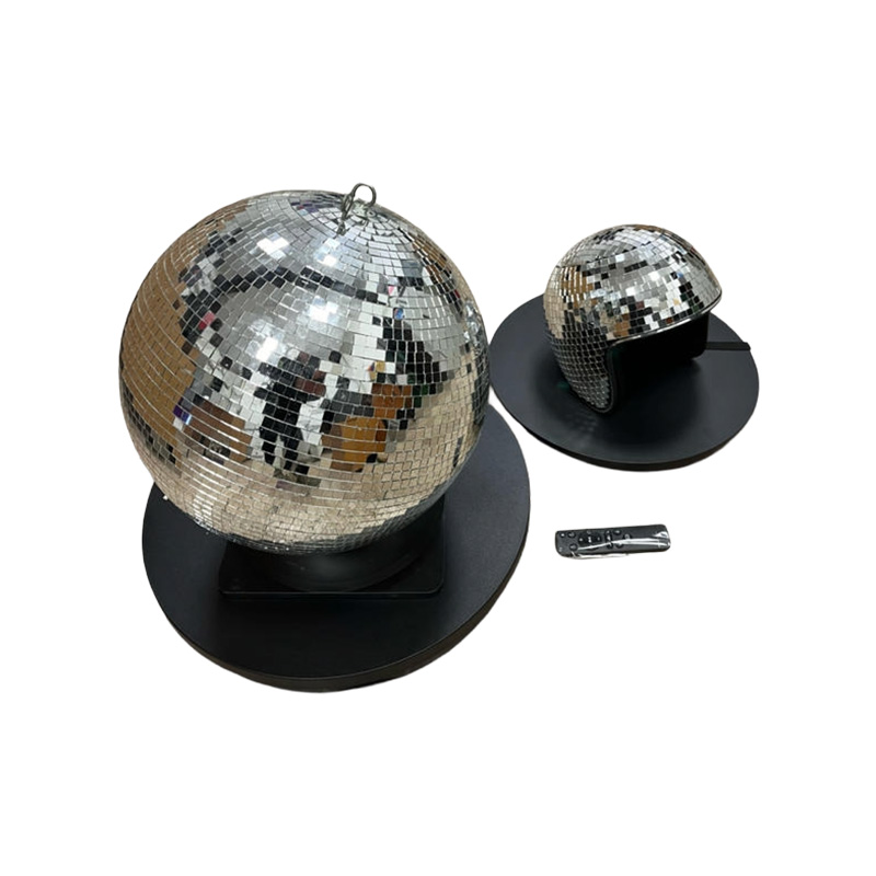 Мы предлагаем аренду специализированных вращающихся подставок для зеркальных шаров. Эти компактные устройства легко управляют диско-шарами диаметром до 100 сантиметров и декоративными элементами весом до 50 килограммов. Дистанционное управление с простым интерфейсом дает диджеям и светохудожникам свободу: можно мгновенно изменить направление вращения, остановить его или настроить темп в зависимости от музыки или концепции мероприятия. Для стабильности мы используем пластиковые насадки, подходящие по диаметру к вашему шару. По запросам оформителей мы монтируем несколько шаров на одной подставке, создавая уникальные световые композиции.