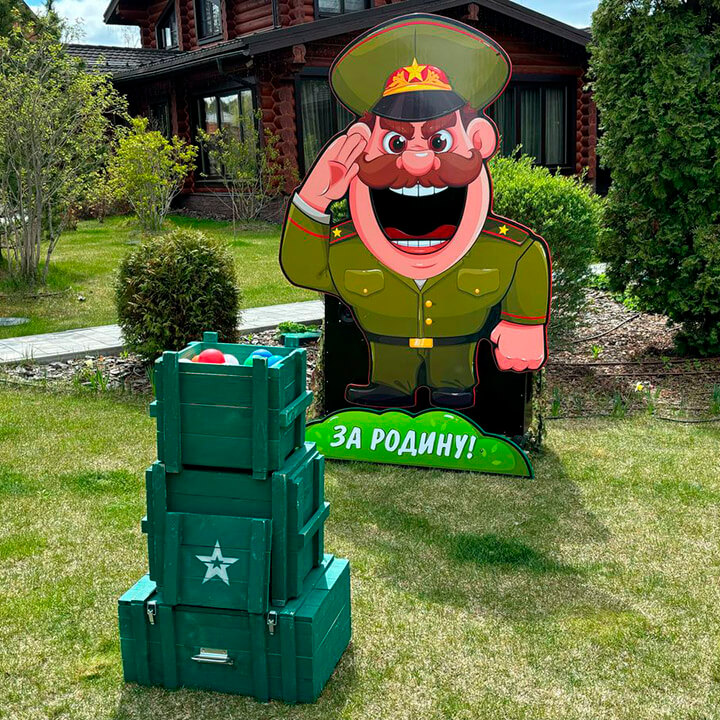 Призовой тир «Генерал» — это уникальный аттракцион, разработанный специально для празднования 23 Февраля. Главная цель участников — забросить как можно больше шаров в специальное отверстие в фигурке генерала. Тот, кто сделает это быстрее и точнее, станет победителем.