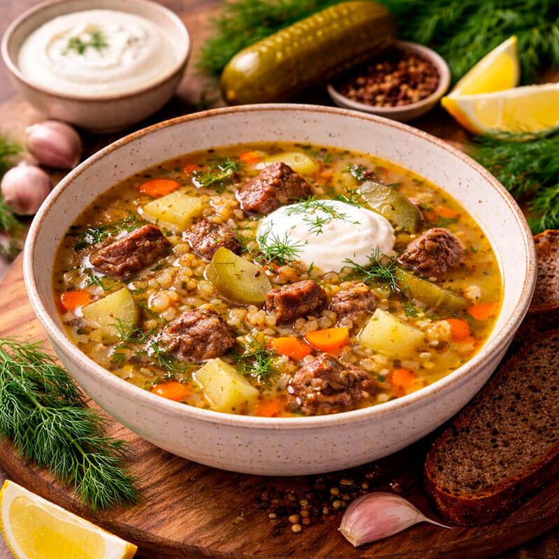 Рассольник - традиционный русский суп с характерной кисловато солёной основой. Его главные особенности мясной бульон (на говядине, свинине или курице), солёные огурцы (основной источник кислоты и вкуса), крупа (чаще перловка), овощи: картофель, морковь, лук. Мы можем организовать «полевую кухню» с супами, в том числе супом Рассольник.