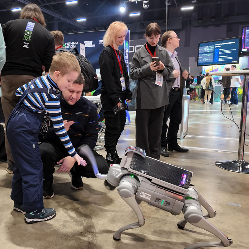 Предлагаем в аренду высокотехнологичного робопса Unitree Go2 Pro, оснащённого динамическим LED‑экраном для трансляции контента. Это не просто робот — это мобильный носитель вашего бренда, способный притягивать взгляды и создавать незабываемую атмосферу.