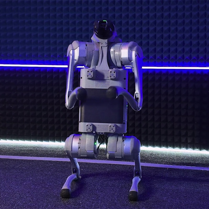 Этот компактный четвероногий робот сочетает в себе передовые достижения робототехники и эффектный дизайн. Благодаря высокой манёвренности и плавности движений он легко перемещается по разным поверхностям — от паркета до асфальта, поднимается по лестницам и преодолевает небольшие препятствия.
