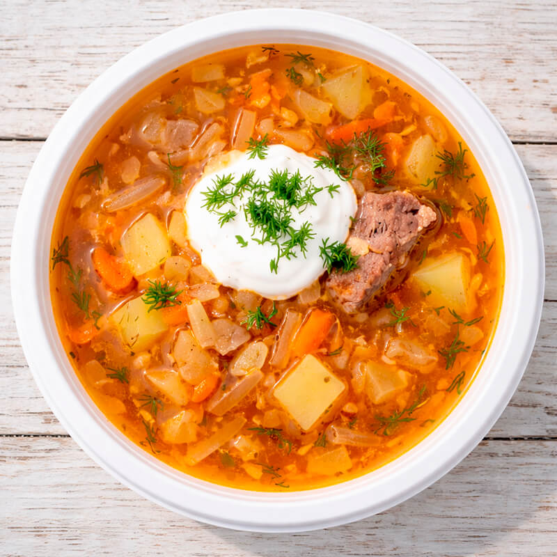 Насладитесь насыщенным вкусом традиционного блюда с кисловатым оттенком свежей капусты, мясистыми кусочками говядины и пряными травами. Щи отлично подойдут для утоления голода и поддержания тепла даже в прохладную погоду. Быстрая доставка горячего блюда осуществляется в удобных герметичных упаковках. Предлагаются услуги организации питания как в помещениях, так и на открытых площадках. Порция — 200 граммов. Возможна организация полевой кухни с супами, включая щи.