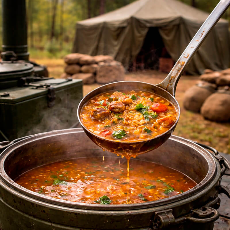 - Организация полевых кухонь: Организуем мобильную кухню прямо на месте вашего мероприятия, обеспечивая свежими порциями вкуснейшего харчо!