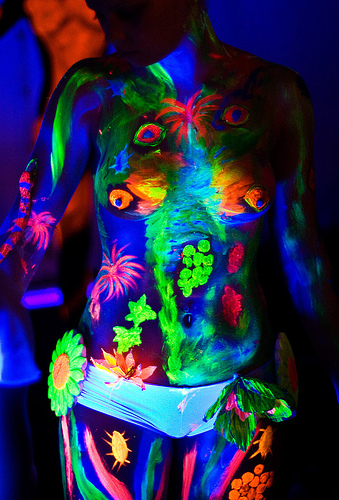 Для оснащения больших сцен в качестве софитных прожекторов используются мощные УФ-светильники модели Black light 400. Позиционирование этих приборов определяется конкретной целью: их размещают на переднем софите, когда световой эффект направлен на исполнителей, или на дальнем софите, если требуется заставить светиться задний план 5680, покрытый люминофорными красителями (типа Rosco) или украшенный аппликацией из акрила.