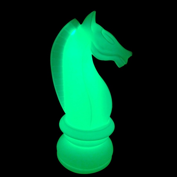 Декоративный LED-конь KNIGHT — это объемная световая инсталляция с автономным питанием от аккумулятора. В комплекте идет пульт, с которого можно задать один постоянный цвет свечения, включить динамический режим смены оттенков с настраиваемой скоростью или эффект мерцания. Такой светящийся жеребец эффектно украсит входную группу на вечеринке или в клубе, станет центром внимания на детском празднике и послужит отличным подарком для рожденных под знаком лошади. При желании, фигура может стать частью большой композиции из LED-шахмат для создания уникального интерьера или проведения необычной игры.