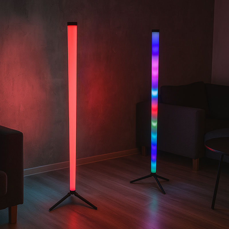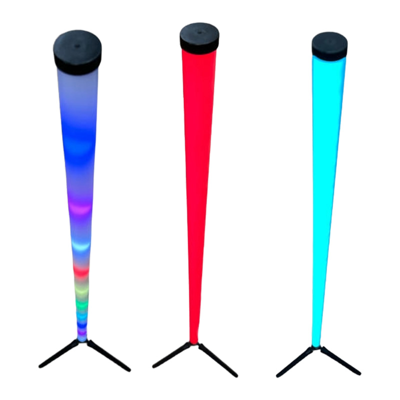Метровые полимерные стойки, отличающиеся минимальным весом и оснащенные штативами, могут служить как эффектными вертикальными светильниками, переливающимися всеми оттенками спектра, так и универсальными элементами оформления. С их помощью легко декорировать сценические кулисы и фон, а также формировать различные буквенные и цифровые знаки. Подключить их можно с помощью USB-разветвителя или пауэрбанка на 4-7 штук.