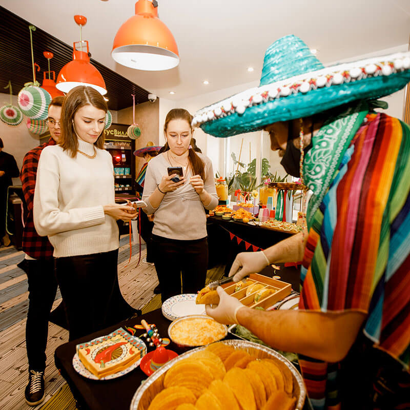 Приготовьте ваших гостей к гастрономическому путешествию! Свежие ингредиенты, хрустящие лепешки и пикантные начинки — мы предлагаем доставку готовых блюд или организацию приготовления прямо на месте вашего события. Добавьте нотку экзотики и удовольствия вашему мероприятию!