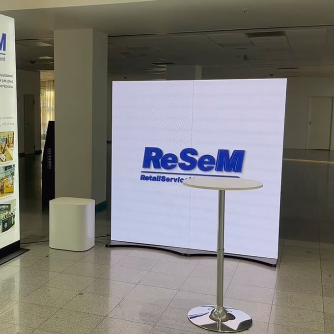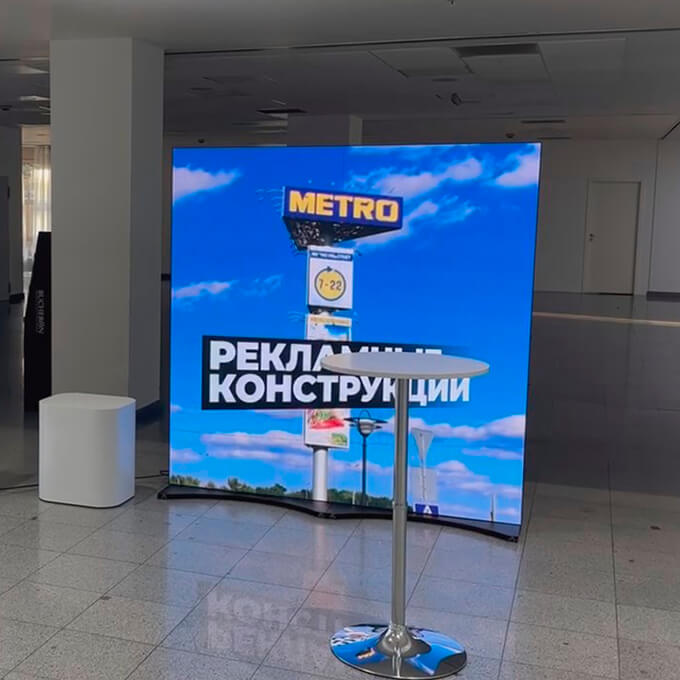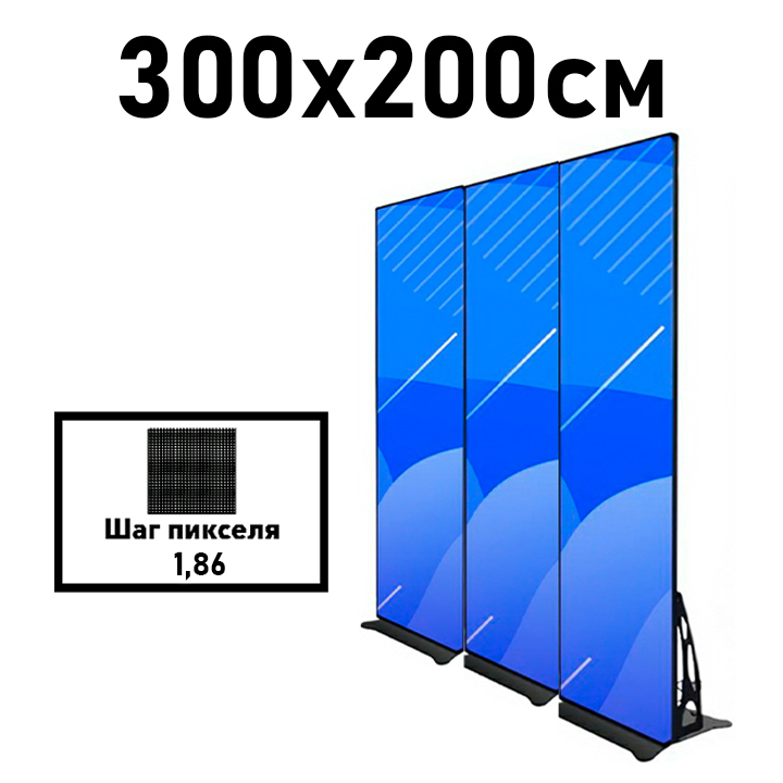 Создайте незабываемое впечатление на вашем событии с помощью профессионального видеополотна из трех соединяемых модулей-пилонов. Каждый отдельный экран обладает высоким качеством изображения с разрешением 516×1032 пикселей, а объединённый экран достигает внушительного размера 3×2 метра с итоговым разрешением 1548×1032 пикселей и шагом матрицы всего 1,86 мм.