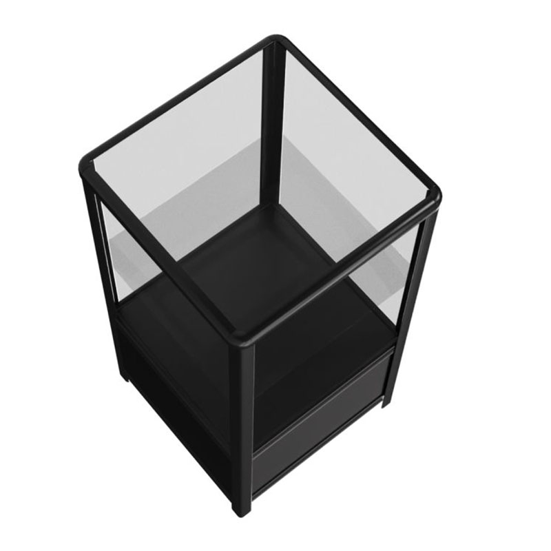 Средняя прямоугольная витрина сочетает черный цвет и стекло, создавая стильный и современный образ. Она универсальна для любых интерьеров и отличается эргономичностью. Товары легко и выгодно выставлять, привлекая внимание покупателей. Прямоугольная форма подходит для помещений любого типа и размера. Витрина долговечна и надежна.