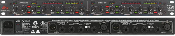 Прибор для динамической обработки DBX 1066-EU объединяет в себе функционал компрессора, лимитера, гейта и экспандера. Пользователь может точно задавать параметры компрессии, включая уровень порога, при котором она начинает действовать. За чистоту сигнала без искажений даже при резких скачках громкости отвечает передовая система защиты громкоговорителей PeakStopPlus. Для более корректной обработки микса с насыщенными басами предусмотрена опция Contour, снижающая влияние низких частот на компрессор. Гибкость конфигурации позволяет использовать устройство как два отдельных моно-прибора или объединять каналы для работы со стереозвуком.