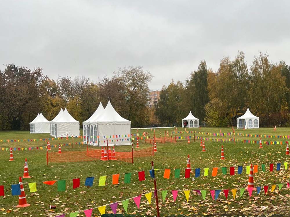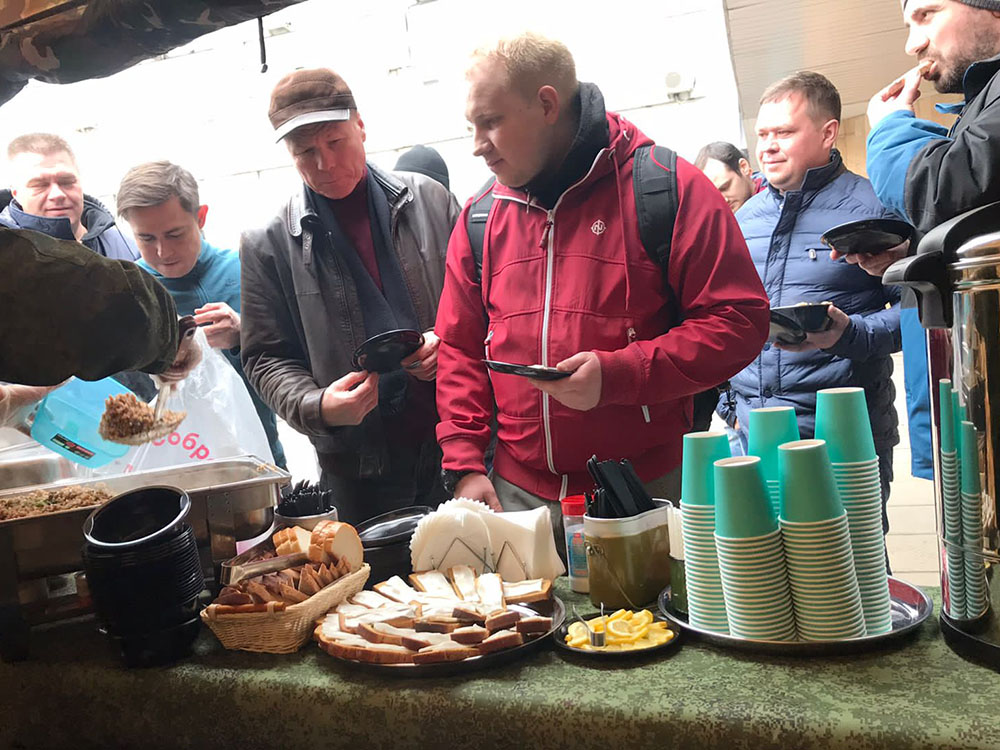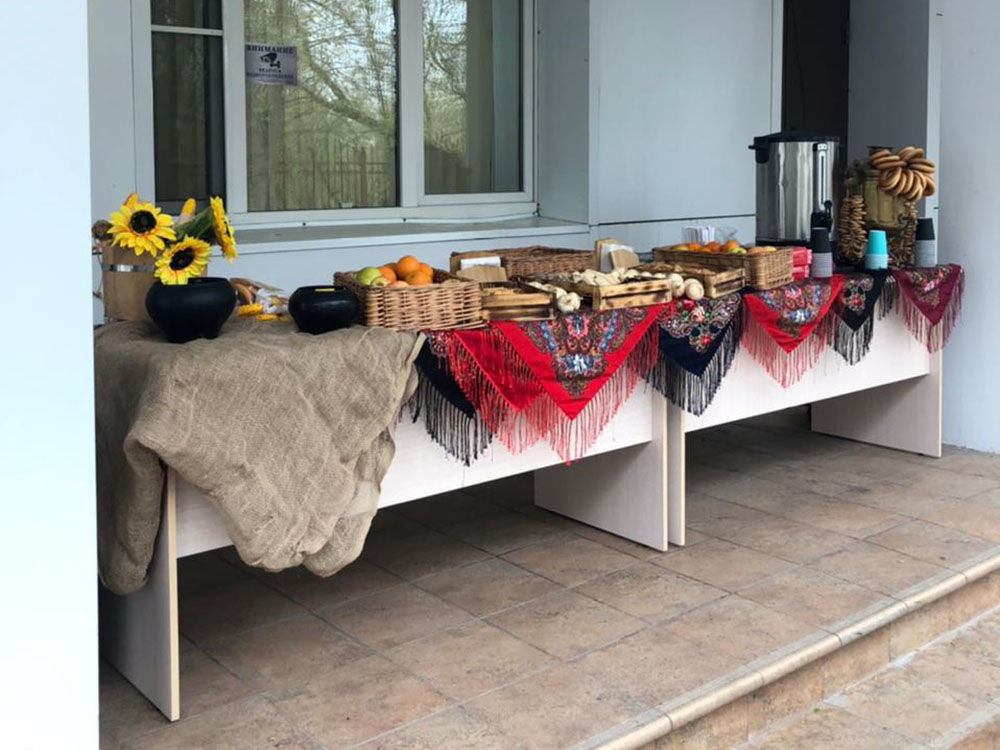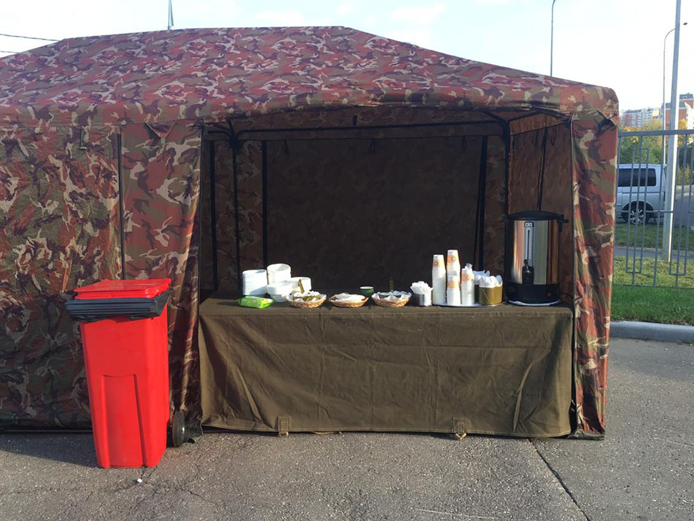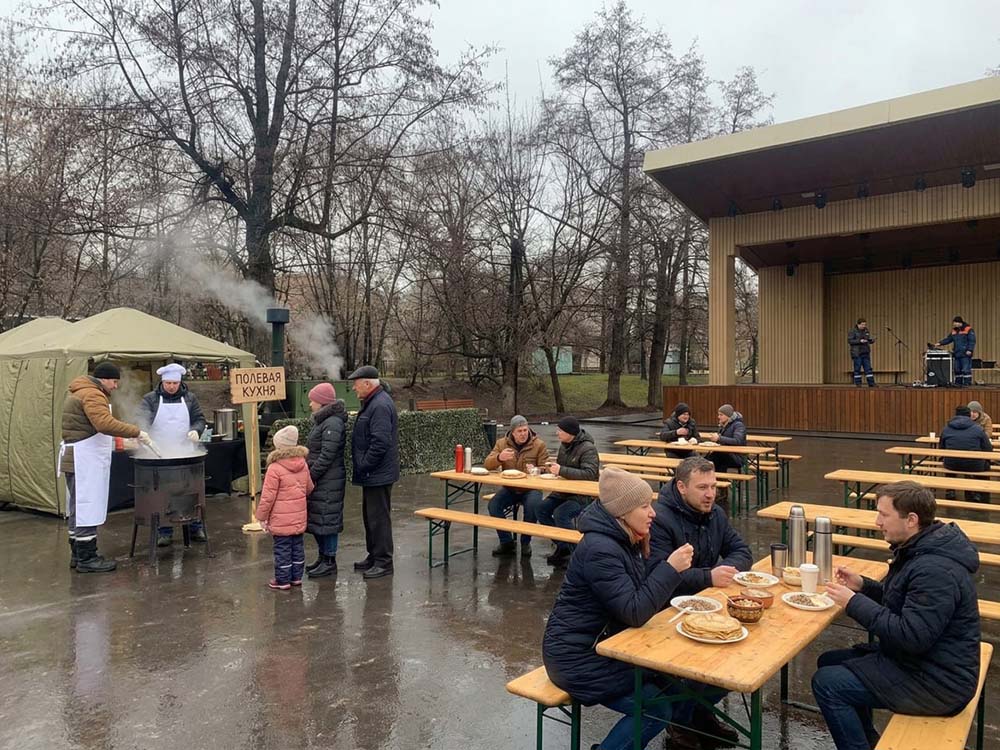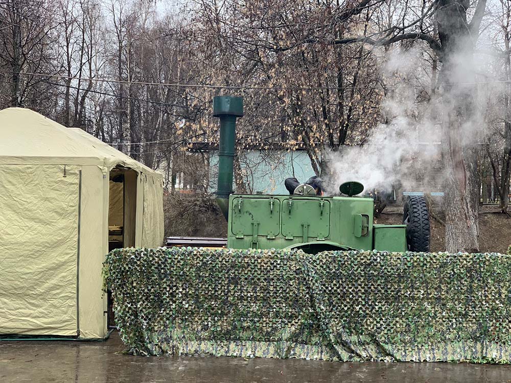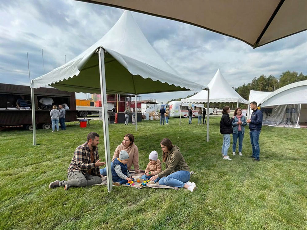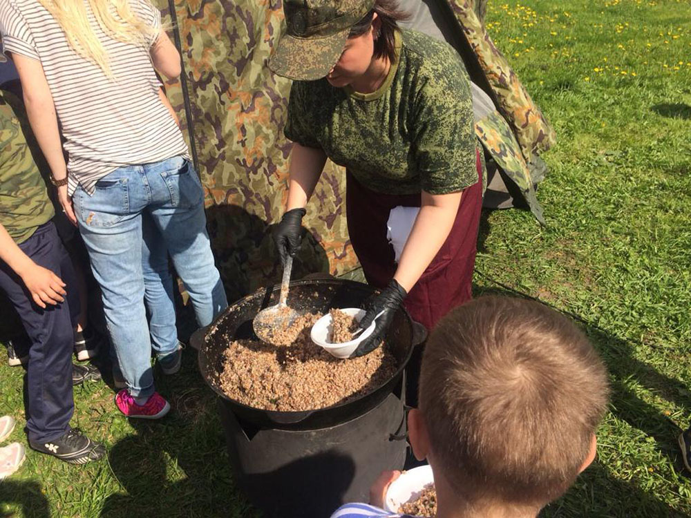На площадку доставили настоящую полевую кухню: с её помощью всех накормили горячим и вкусным обедом прямо на месте. Для перекуса и короткого отдыха обустроили уютную зону с удобными столами и стульями. А чтобы участники могли укрыться от солнца или внезапного дождика, установили просторные шатры и палатки.