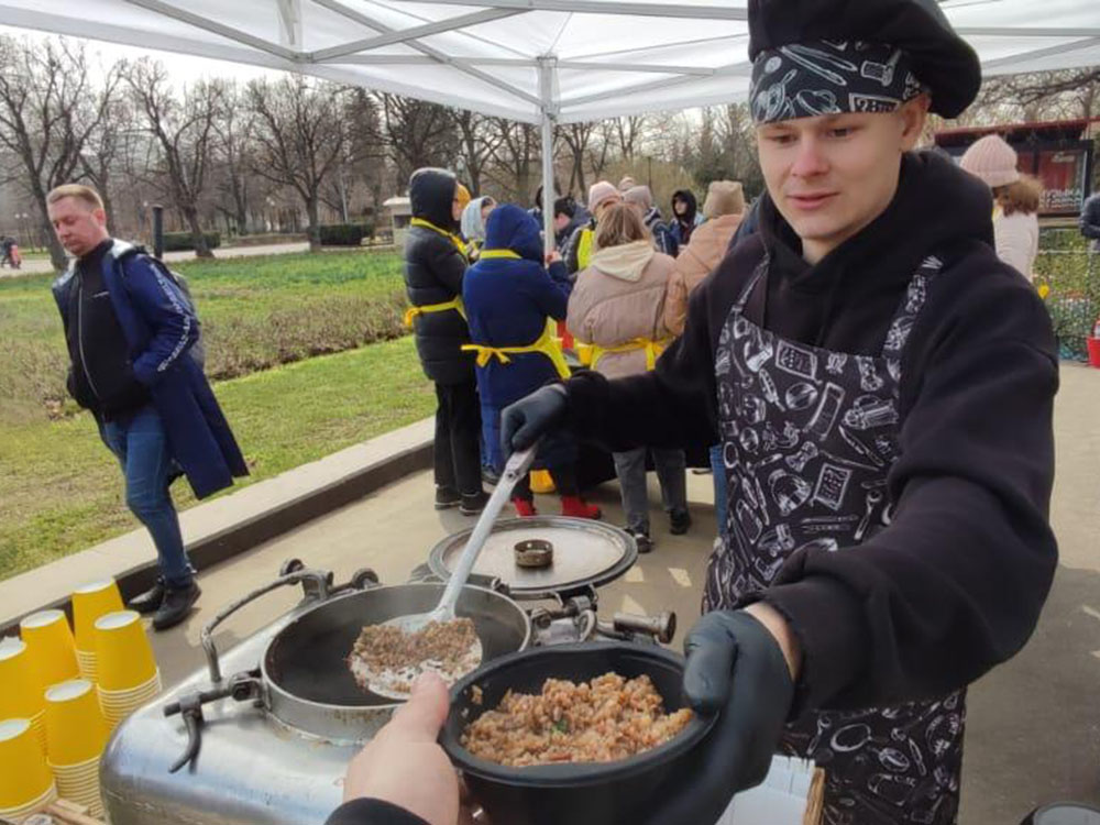 Мы позаботились и об инвентаре для уборки: предоставили всё необходимое — грабли, метлы, мешки для мусора, перчатки и многое другое, — чтобы работа шла эффективно. Наши повара приготовили сытный обед прямо на месте: организовали полноценный кейтеринг, чтобы никто не остался голодным. А выделенный персонал внимательно следил за тем, чтобы еда подавалась вовремя, а всё оборудование работало как надо.