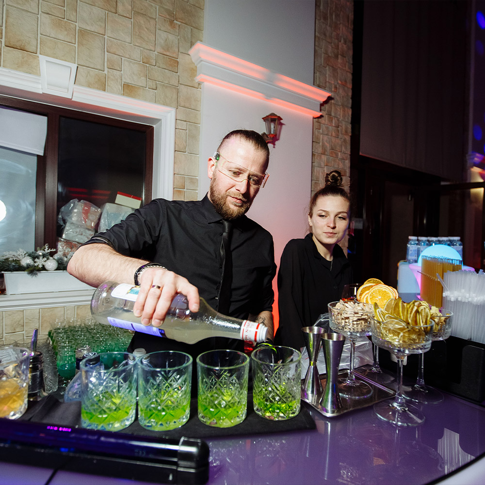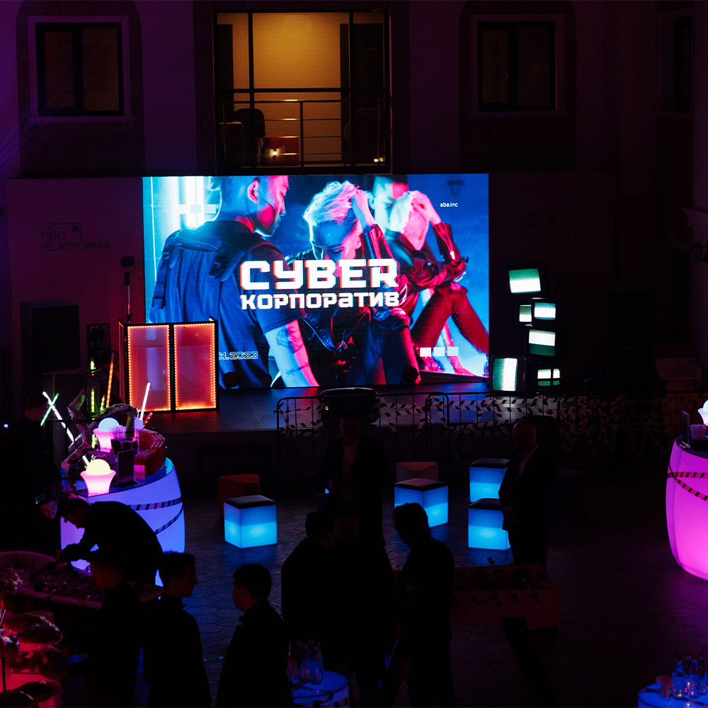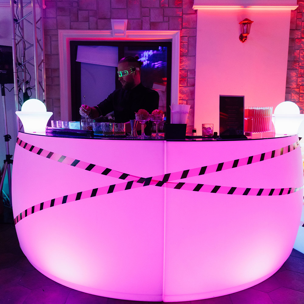 Организовали корпоратив на нашей площадке в Москве. Установили неоновые бары, анимационные станции и развлечения для гостей.