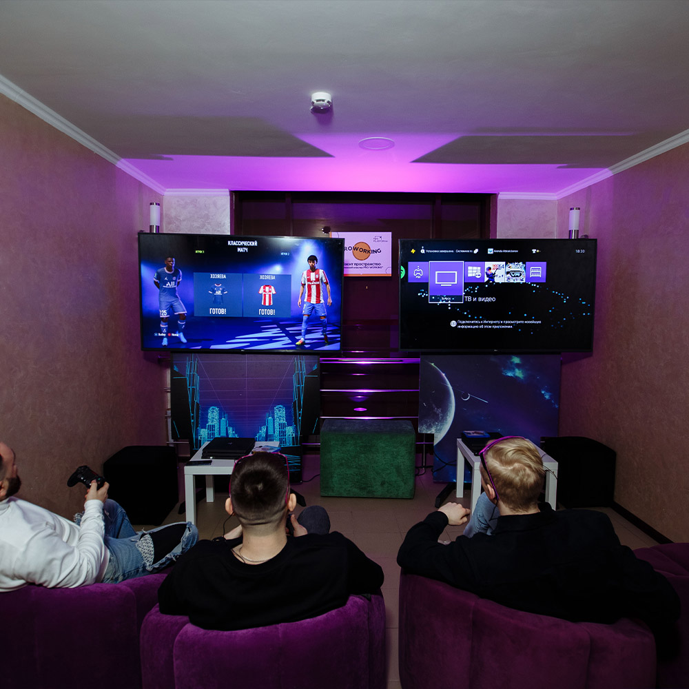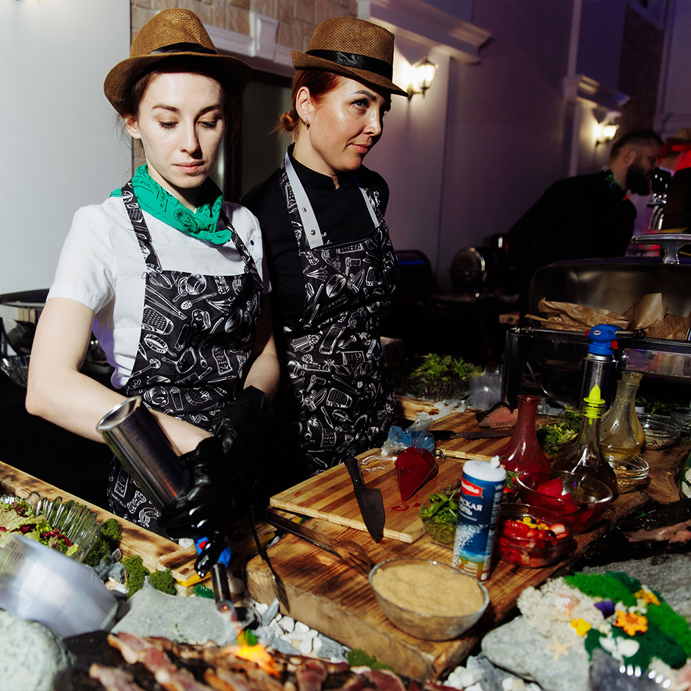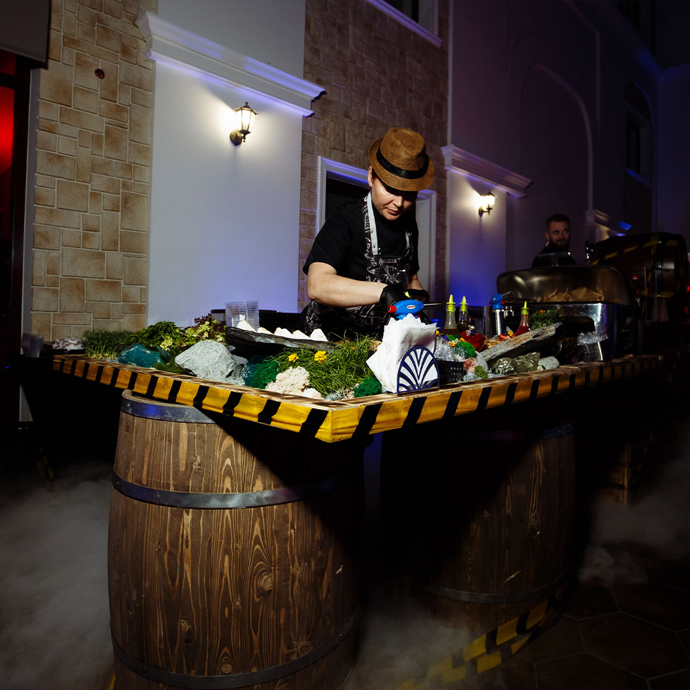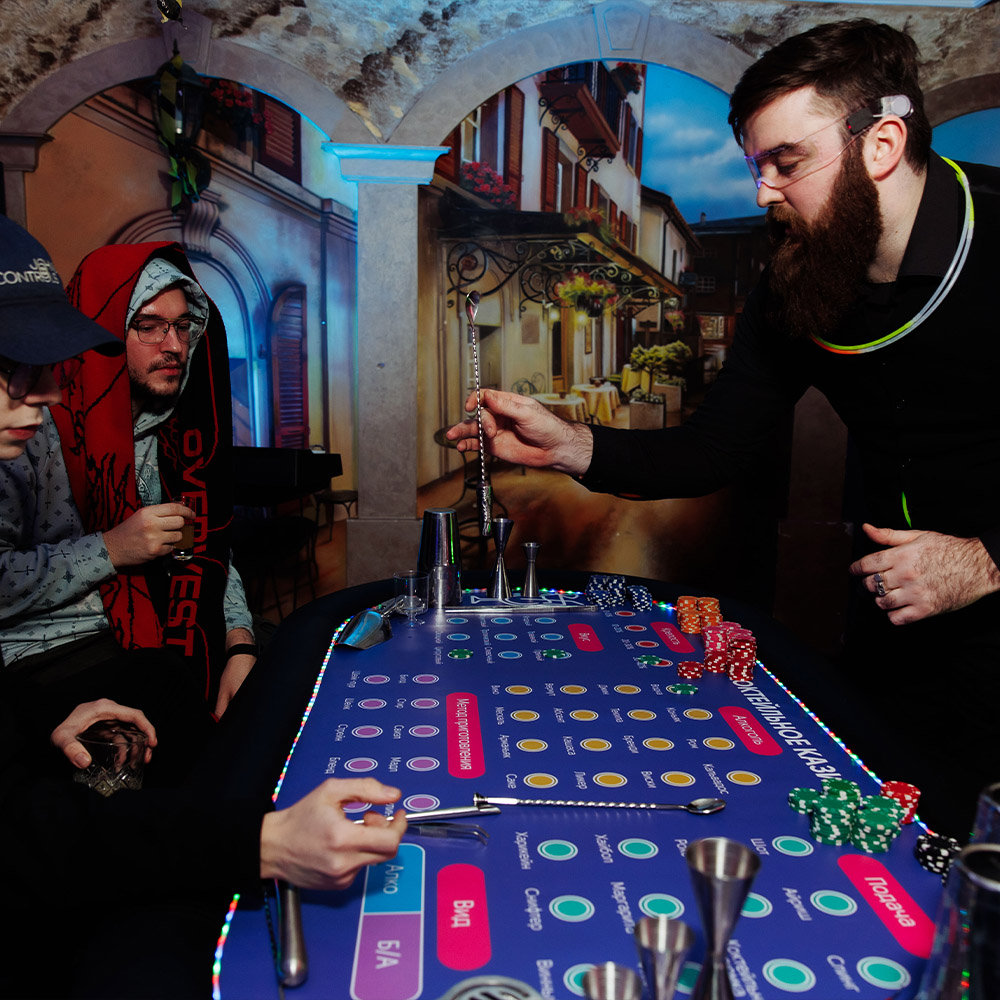 Организовали корпоратив на нашей площадке в Москве. Установили неоновые бары, анимационные станции и развлечения для гостей.