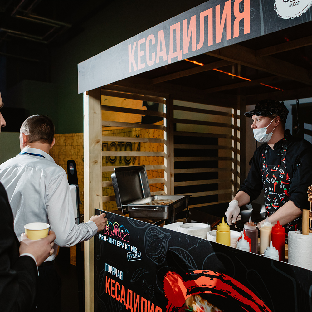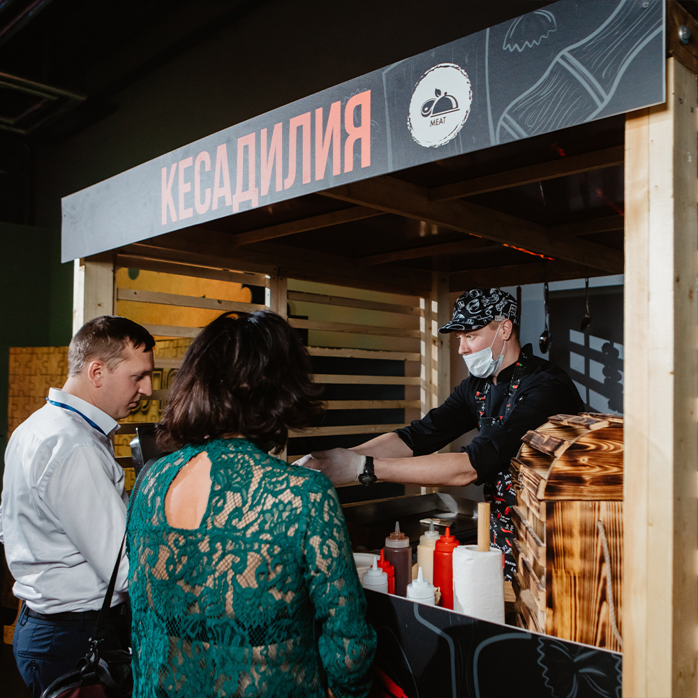 Организовали кейтеринг с приготовлением стрит-фуда и выдачи его из киосков на выставке в Москве.