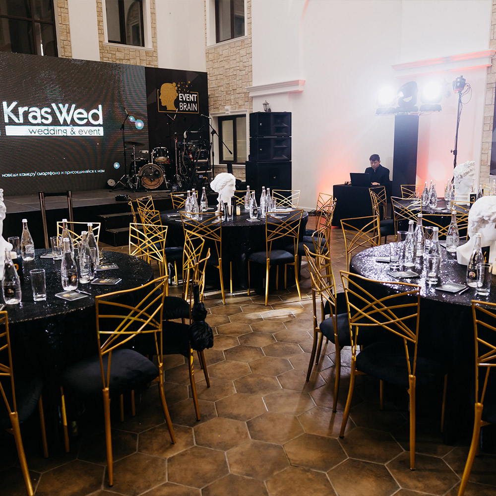 Провели гламурный квиз на нашей площадке для мероприятия Event Brain. Гости пришли в пиджаках и смокингах, а дамы в изящных платьях.