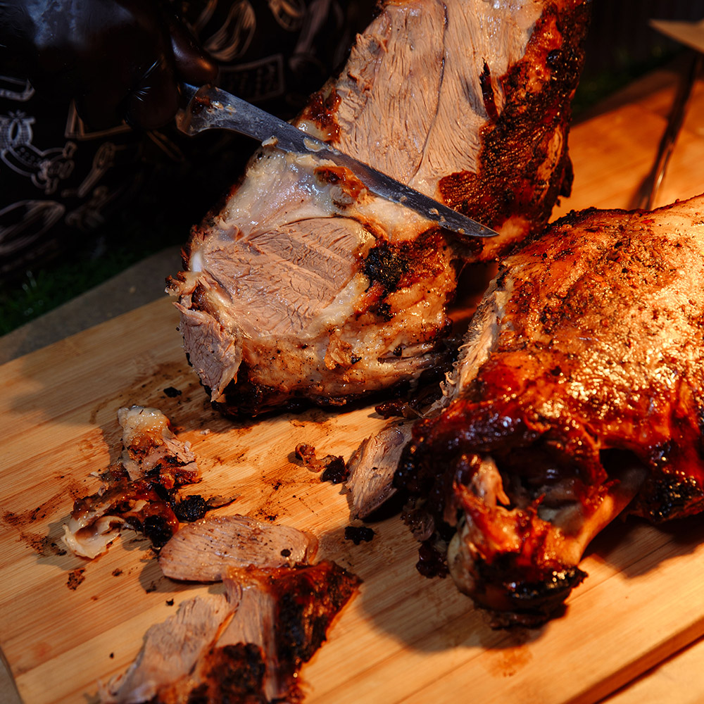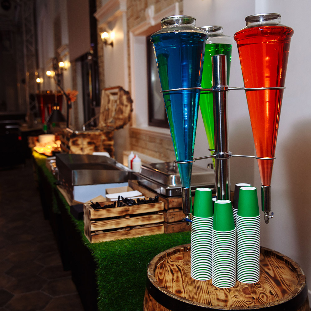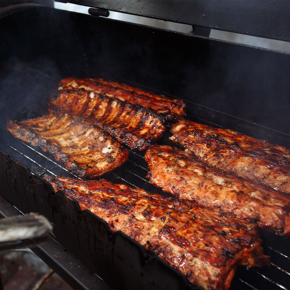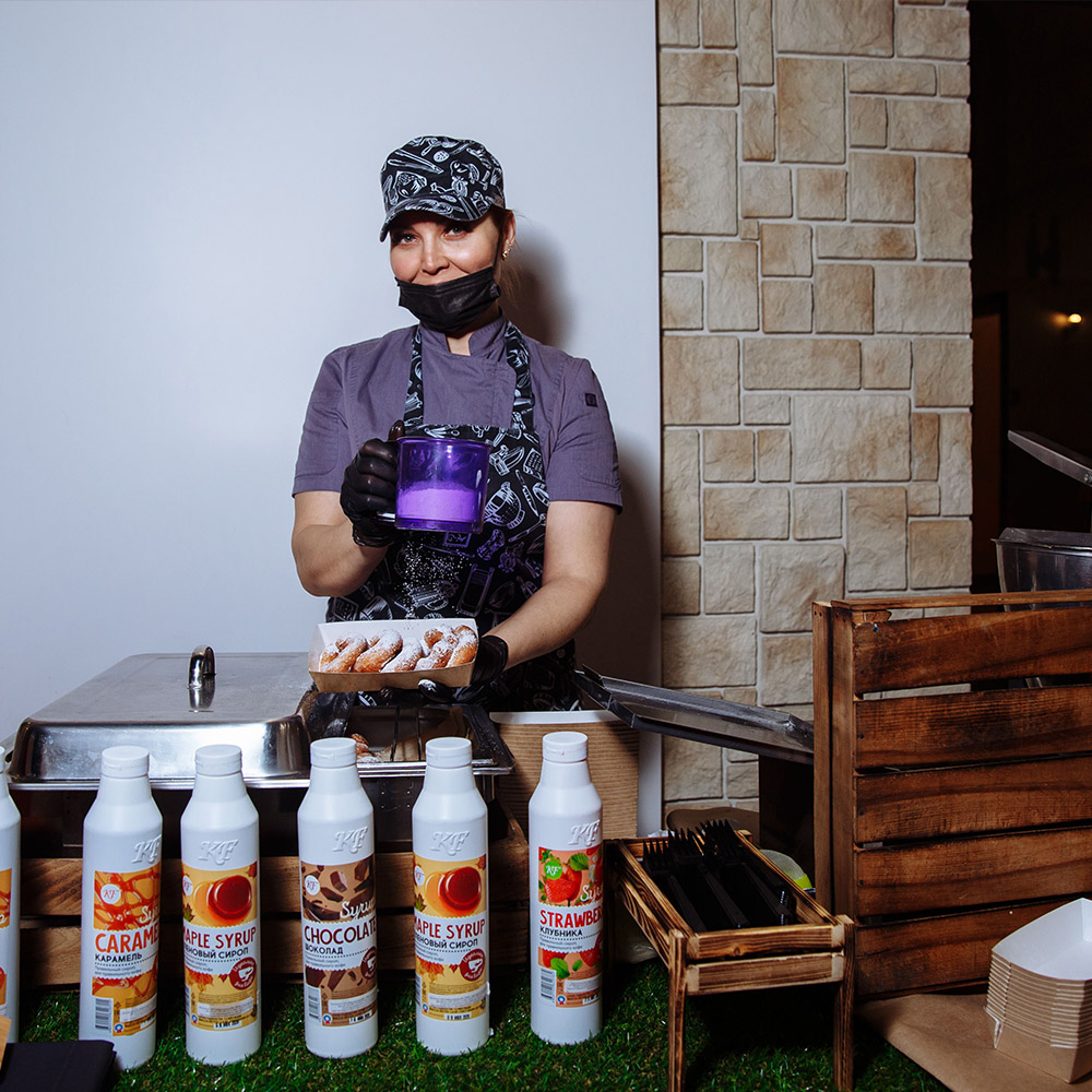 Организовали кейтеринг с барбекю и коптильной, с приготовлением блюд на уличной территории нашей площадки.