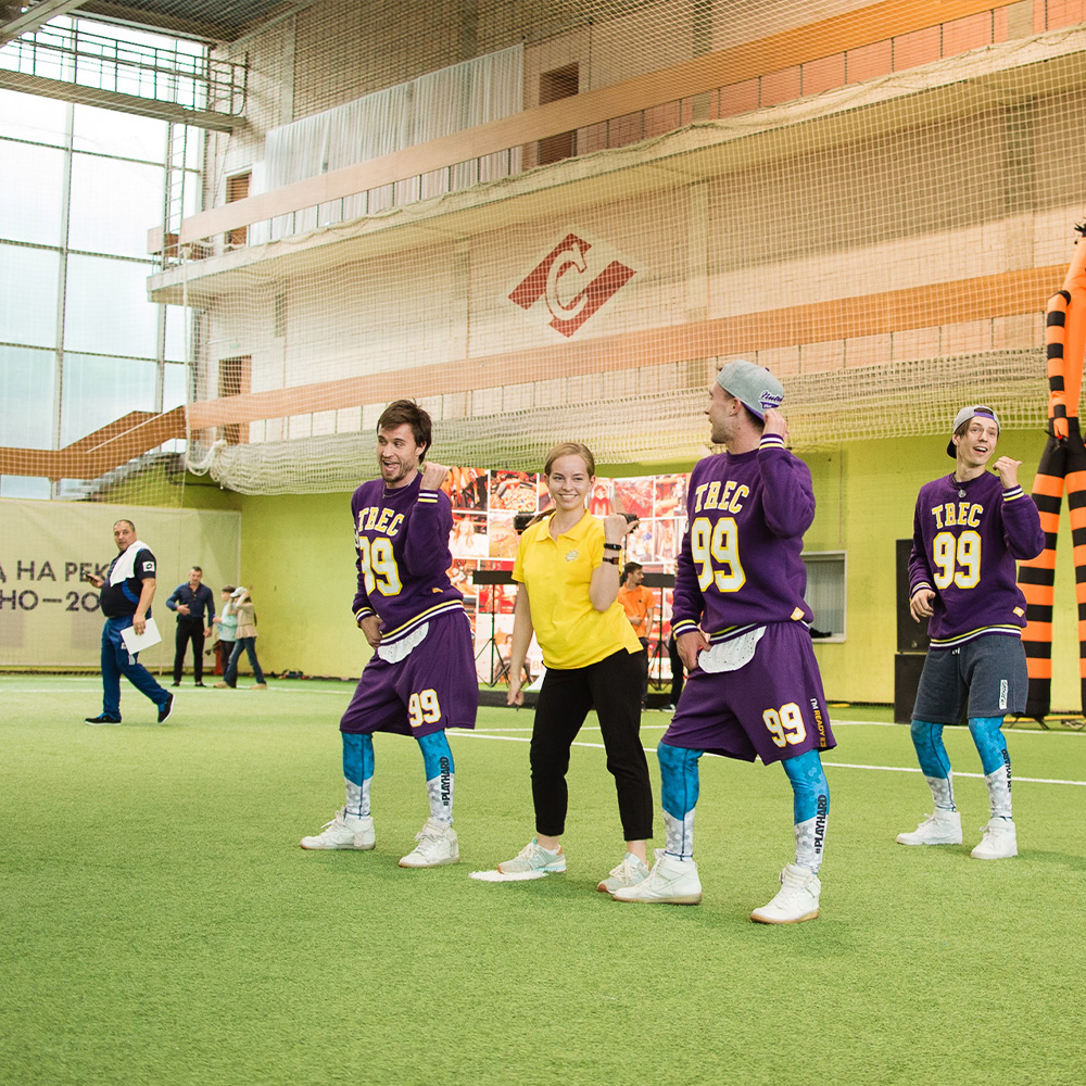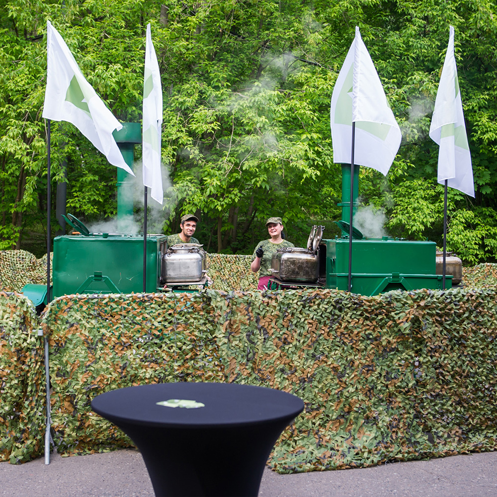 Организовали праздник спорта на московском стадионе Спартак. Полоса препятствий, надувные и механические аттракционы. VR и игры. Полевая кухня и армейская фотозона для гостей.