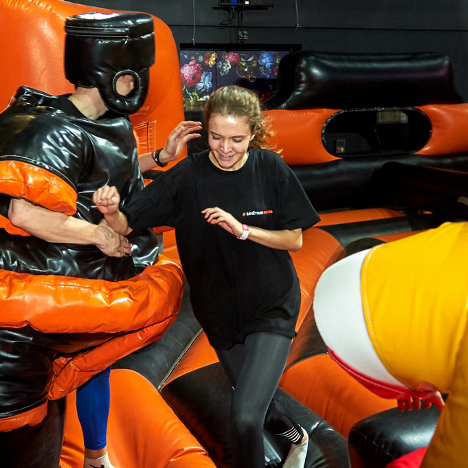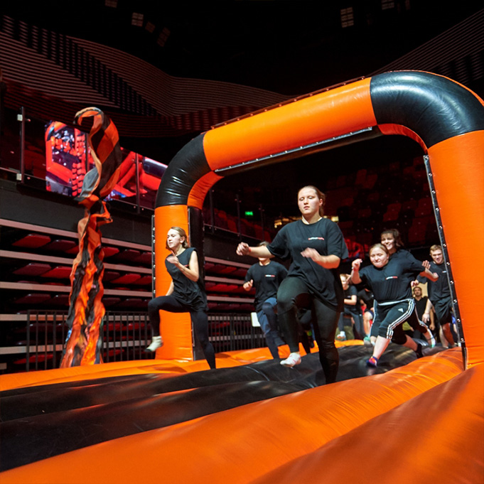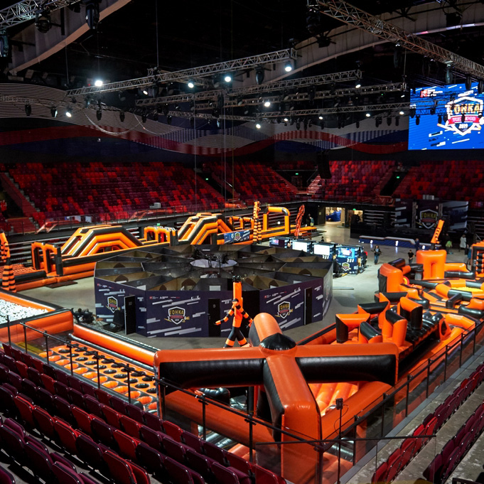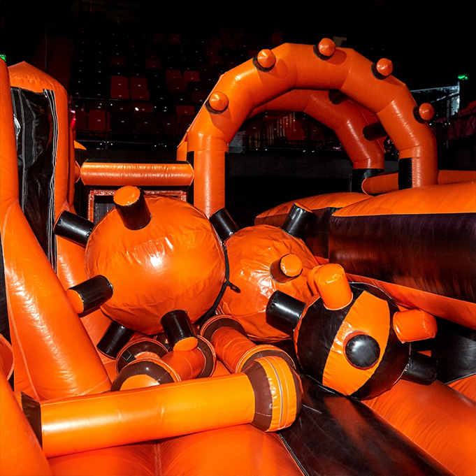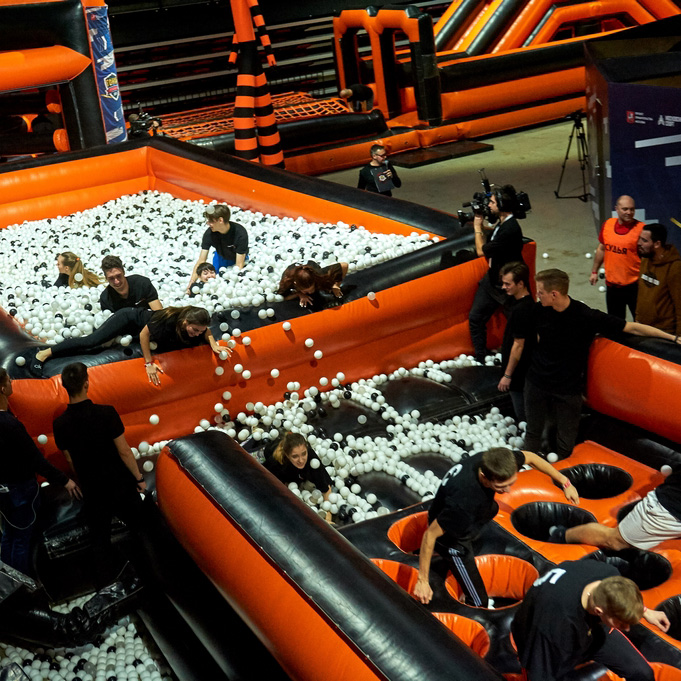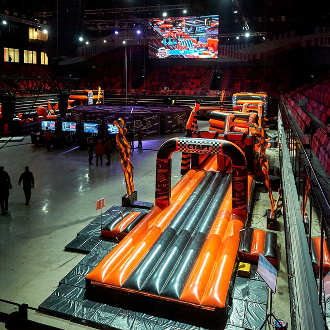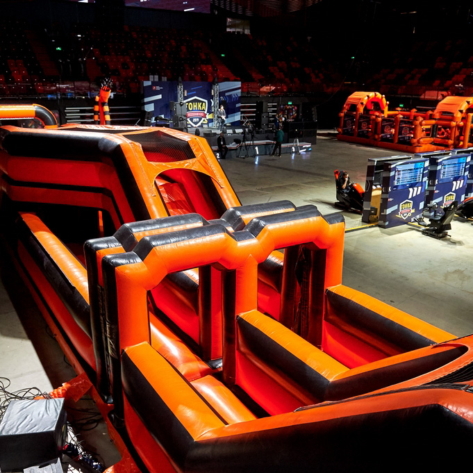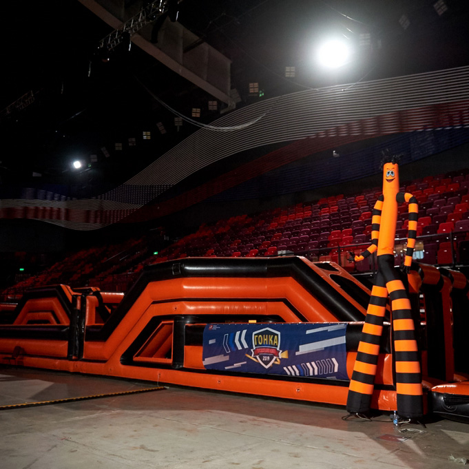 Установили полосу препятствий, аттракционы и развлечения, для проведения мероприятия "Гонка Универов".