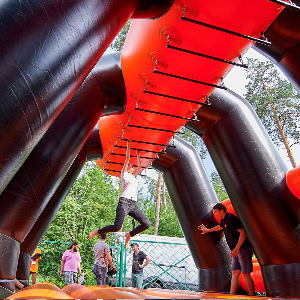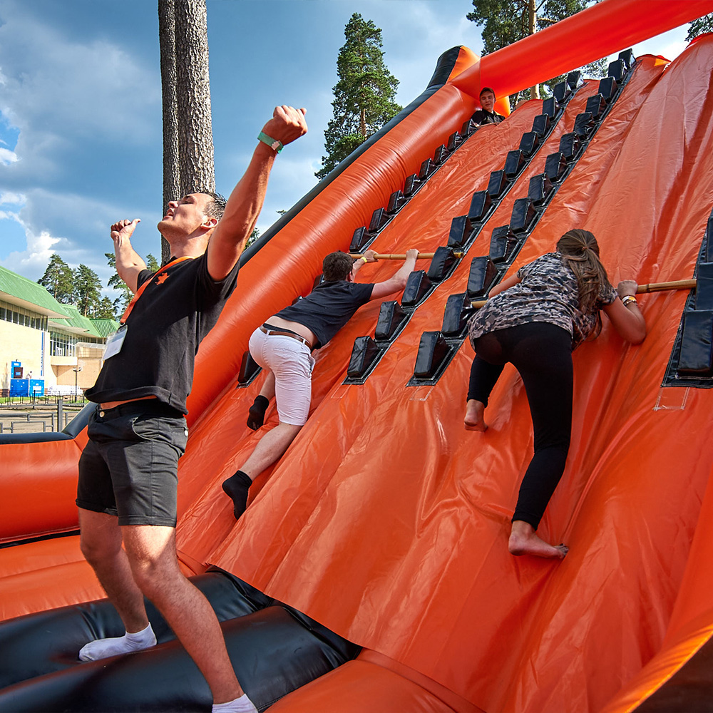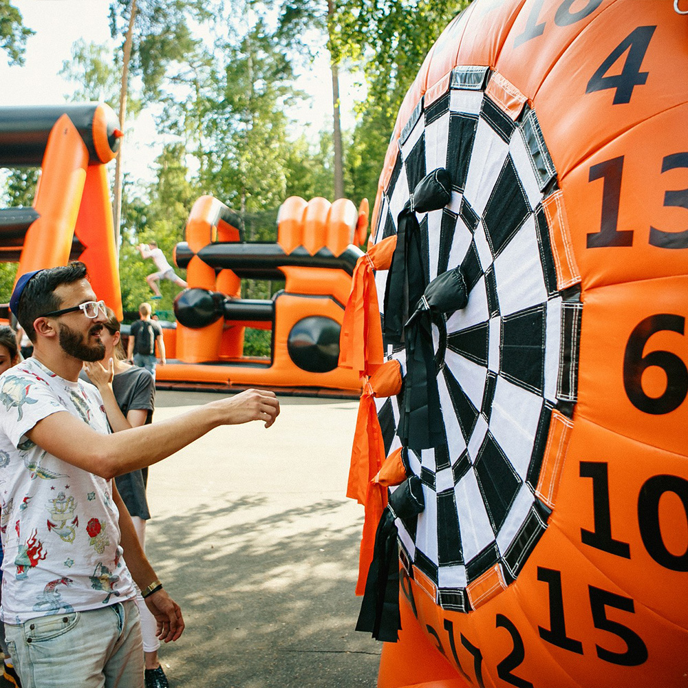Спортивный праздник в городе с аттракционами и развлечениями.