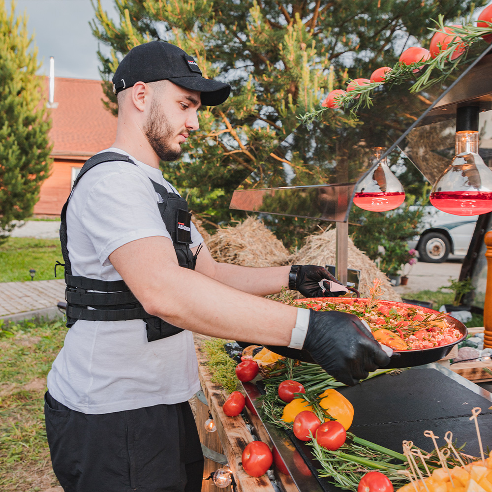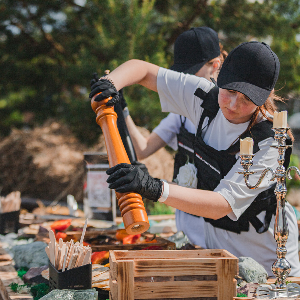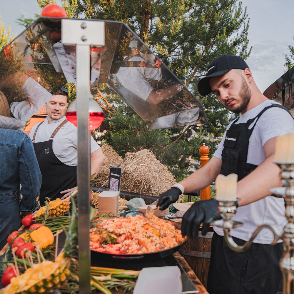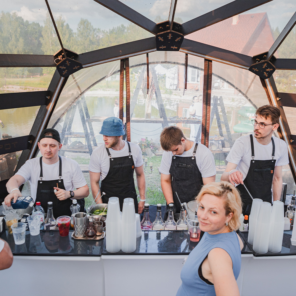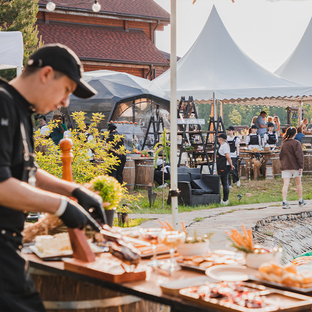 На территории закрытого дома, установили несколько кулинарных станций, зон BBQ и выездной бар чтобы накормить около 200 человек. Установили шатры и поставили аттракционы, чтобы развлечь гостей. Красивый кейтеринг "под ключ" - это про нас! Заказ на наши кулинарные станции в Подмосковье.