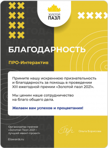 Генеральный партнер национальной премии «Золотой ПАЗЛ»