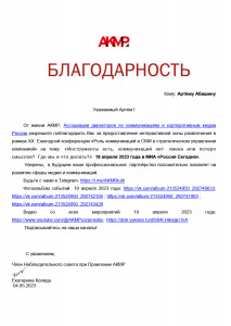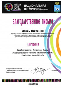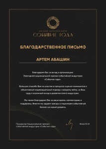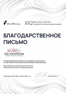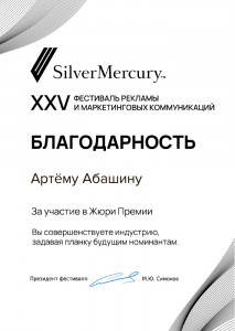 Соорганизатор национальной премии "Серебряный Меркурий"