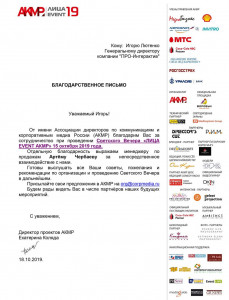 Партнер и лауреат конкурса "Лучшая event-команда сертифицированная АКМР"