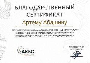 Член совета Ассоциации Кейтерингов и Банкетных Служб
